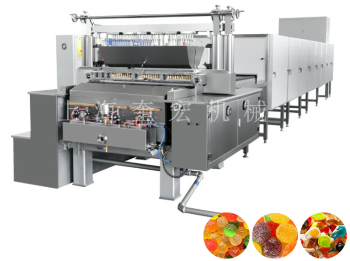 凝膠軟糖生產線 該生產線是我公司研發部根據市場對凝膠軟糖多種形狀、多種顏色的需求,采用先進的生產工藝研制而成的。它是一種連續生產高級膠體糖果(QQ糖)的理想設備。可生產高品質的單色、雙色QQ糖;也可通過更換模具或澆注頭生產出高品質、多種形狀,多種顏色的凝膠軟糖。在線完成香精色素酸液的定量加注混合;高度自動化生產不僅能生產出質量穩定的產品,還能節省人力和占用空間從而降低生產成本。